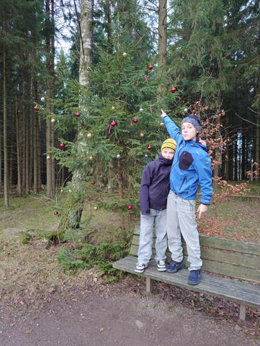 Önskar en god jul och gott nytt år, sådär lite i efterskott. Har inte skrivit på bloggen på ett tag, då jag har problem med en tennisarmbåge och därav försäker minimera tiden jag sitter vid datorn. Men nu försöker jag sitta vid vänsterarmen. Bilder på killarna runt granar nedan (Stortorget i Lund och Skrylle)!