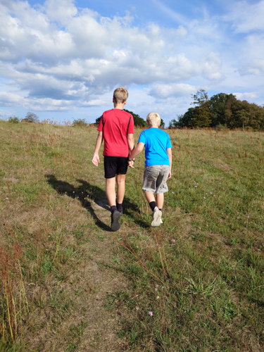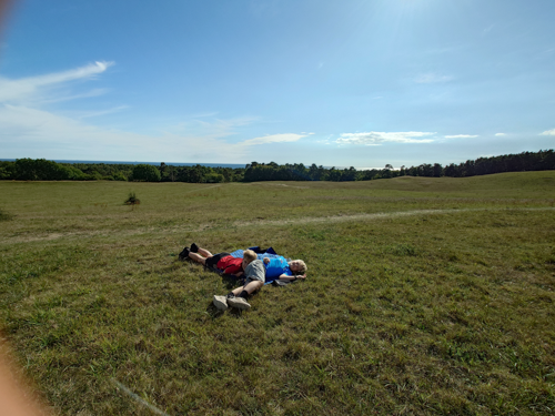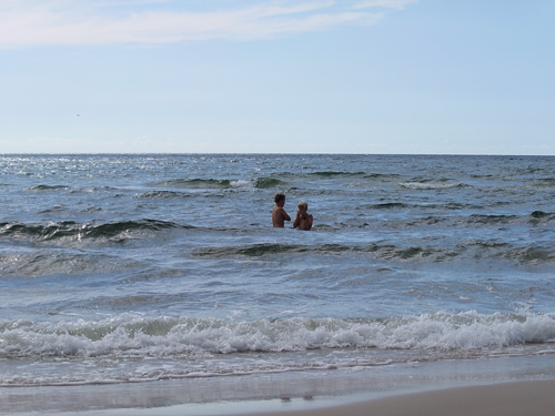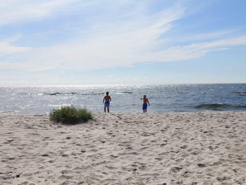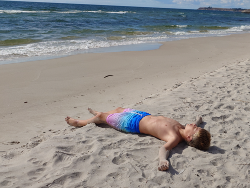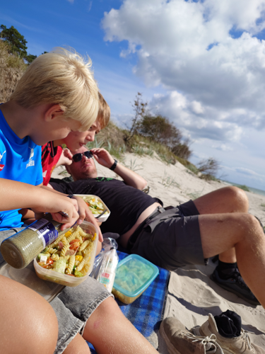 Efter en liten promenad i skogen kom vi till stranden. Pastasallad!
