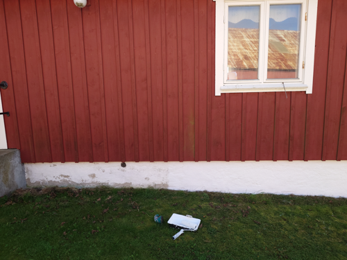 Innan det blev för kallt så passade jag på att måla det vita med silikatfärg. Nog att silikatfärg är dyrt, men det är drygt. En stor burk har räckt till alla väggar. Jag har varit dålig på “före” och “efter” bilder, men några bilder visar i alla fall en del av väggen som “före”-bild. Nästa år får jag mura och baksidan på ladoprna, och måla lite rött.