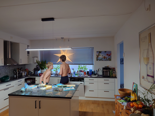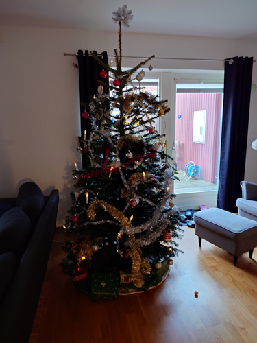 Vi köpte för en gångs skull gran tidigt, och inte tre dagar innan jul. Trevligt att inte behöva ta “den sista granen”. Viktor fick välja gran. Senare under julledigheten så gick elen sönder i den delen av huset så granen gjorde sig inte rätta i mörkret, men den var fin!