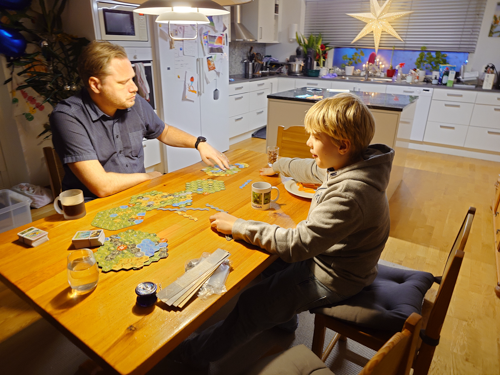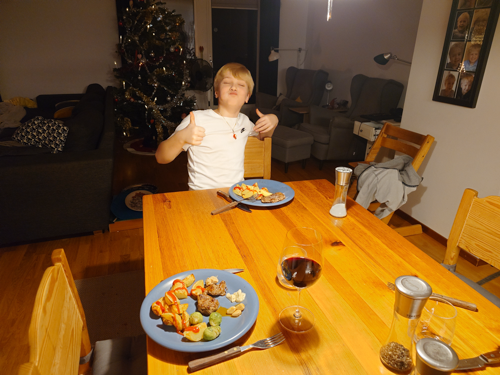Viktor blev arg för att han inte fick vara med Alfred och hans kompisar och skjuta runt 23tiden. Vi spelade lite spel istället och han samlade väl sig hyggligt till 12-slaget.